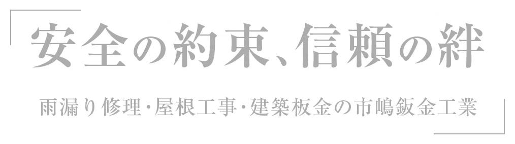 新潟県新潟市を拠点に、信頼と安全に対する絶対的なコミットメントでお客さまのニーズにお応えしている市嶋鈑金工業でございます。板金工事、銅板工事、エクステリア工事、屋根断熱工事等、幅広い施工範囲とアフターフォローを通じて、お客さまの大切なお住まいを守ることに全力を尽くします。